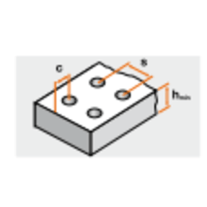 | Concrete C20/25 tension load (kN) | Concrete C20/25 tension load (kN) | Concrete C20/25 tension load (kN) | Min. distance betw. anchors mm | Min. distance betw. anchors mm | Min. edge distance mm | Min. edge distance mm | Minimum thickness mm | Minimum thickness mm | Installation torque (Nm) | |